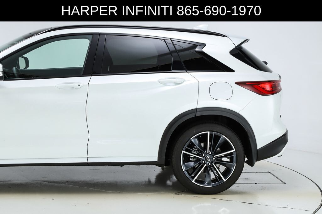 Harper INFINITI is pumped up to offer this good-looking 2025 INFINITI QX50 in Radiant White HARPER INFINITI believes in the quality of the vehicles we sell so well that we provide an UNLIMITED MILES, POWERTRAIN WARRANTY on every new and qualifying pre-owned vehicle it sells!!! This warranty is good at any ASE certified shop in the 48 continental United States!! Check out all these great options 12 Speakers, 4-Wheel Disc Brakes, ABS brakes, Air Conditioning, Alloy wheels, AM/FM radio: SiriusXM, Auto High-beam Headlights, Auto-dimming Rear-View mirror, Automatic temperature control, Bose Premium Audio System, Brake assist, Bumpers: body-color, CD player, Climate Controlled Front Bucket Seats, Delay-off headlights, Driver door bin, Driver vanity mirror, Dual front impact airbags, Dual front side impact airbags, Electronic Stability Control, Emergency communication system: INFINITI InTouch (1-year complimentary trial), Exterior Parking Camera Rear, Four wheel independent suspension, Front anti-roll bar, Front Bucket Seats, Front Center Armrest, Front dual zone A/C, Front fog lights, Front reading lights, Fully automatic headlights, Garage door transmitter: HomeLink, Heated door mirrors, Heated front seats, Heated steering wheel, Illuminated entry, Illuminated Kick Plates, Knee airbag, Leather Shift Knob, Leather steering wheel, Low tire pressure warning, Memory seat, Navigation system: INFINITI InTouch Navigation, Occupant sensing airbag, Outside temperature display, Overhead airbag, Overhead console, Panic alarm, Passenger door bin, Passenger vanity mirror, Power door mirrors, Power driver seat, Power Liftgate, Power moonroof, Power passenger seat, Power steering, Power windows, Radio data system, Rear anti-roll bar, Rear reading lights, Rear seat center armrest, Rear side impact airbag, Rear window defroster, Rear window wiper, Remote keyless entry, Security system, Semi-Aniline Leather-Appointed Seat Trim, Speed control, Speed-sensing steering, Speed-Sensitive Wipers, Splash Guards (Set of 4), Split folding rear seat, Spoiler, Steering wheel mounted audio controls, Tachometer, Telescoping steering wheel, Tilt steering wheel, Traction control, Trip computer, Turn signal indicator mirrors, Variably intermittent wipers, Ventilated front seats, and Wheels: 20" Dark-Painted Machine-Finished Alloy.