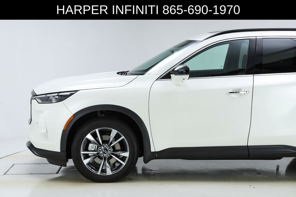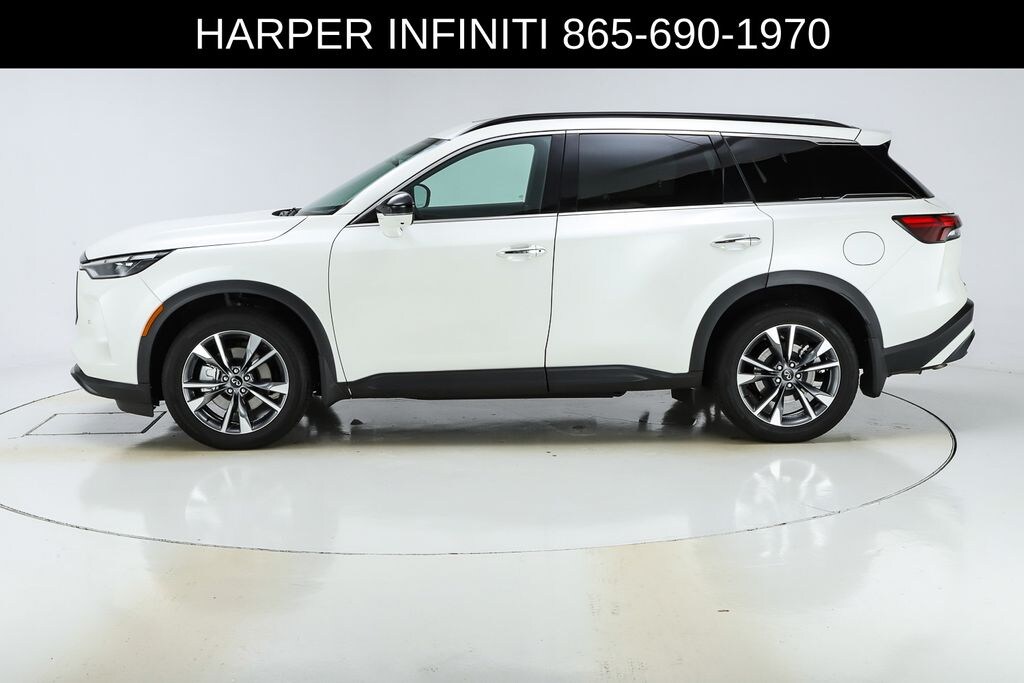 Harper INFINITI is proud to offer this good-looking 2025 INFINITI QX60 in Majestic White HARPER INFINITI believes in the quality of the vehicles we sell so well that we provide an UNLIMITED MILES, POWERTRAIN WARRANTY on every new and qualifying pre-owned vehicle it sells!!! This warranty is good at any ASE certified shop in the 48 continental United States!! Check out all these great options Navigation system: INFINITI InTouch Navigation, 3rd row seats: bench, 4-Wheel Disc Brakes, ABS brakes, Air Conditioning, Alloy wheels, AM/FM radio: SiriusXM, Auto High-beam Headlights, Auto tilt-away steering wheel, Auto-dimming Rear-View mirror, Automatic temperature control, Brake assist, Delay-off headlights, Driver door bin, Driver vanity mirror, Dual front impact airbags, Dual front side impact airbags, Electronic Stability Control, Exterior Parking Camera Rear, Four wheel independent suspension, Front anti-roll bar, Front Bucket Seats, Front dual zone A/C, Front reading lights, Fully automatic headlights, Garage door transmitter: HomeLink, Heated door mirrors, Heated front seats, Heated rear seats, Heated steering wheel, Illuminated entry, Knee airbag, Leather Shift Knob, Leather steering wheel, Leather-Appointed Seating Surfaces, Low tire pressure warning, Memory seat, Occupant sensing airbag, Outside temperature display, Overhead airbag, Overhead console, Panic alarm, Passenger door bin, Passenger vanity mirror, Power door mirrors, Power driver seat, Power Liftgate, Power moonroof, Power passenger seat, Power steering, Power windows, Radio data system, Rain sensing wipers, Rear air conditioning, Rear anti-roll bar, Rear reading lights, Rear side impact airbag, Rear window defroster, Rear window wiper, Reclining 3rd row seat, Remote keyless entry, Security system, Speed control, Speed-sensing steering, Speed-Sensitive Wipers, Split folding rear seat, Spoiler, Steering wheel memory, Steering wheel mounted audio controls, Tachometer, Telescoping steering wheel, Tilt steering wheel, Traction control, Trip computer, Turn signal indicator mirrors, and Variably intermittent wipers.
