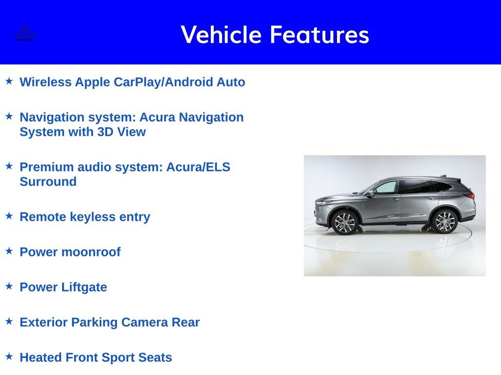 Step into the well-appointed cabin of this 2023 Acura MDX and experience the perfect blend of style and substance. The spacious and versatile interior offers ample room for passengers and cargo, while the premium materials and thoughtful design elements create an environment of unparalleled comfort and refinement.