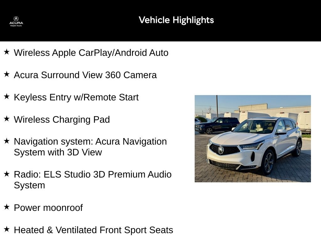 HARPER ACURA believes in the quality of the vehicles we sell so well that we provide an UNLIMITED MILES POWERTRAIN WARRANTY on every new and qualifying pre-owned vehicle it sells!!! This warranty is good at any ASE certified shop in the 48 continental United States!! Check out all these great options Heated & Ventilated Front Sport Seats, Heated rear seats, Heated steering wheel, Navigation system: Acura Navigation System with 3D View, Power moonroof, Radio: ELS Studio 3D Premium Audio System, Wheels: 19" x 8.0J Shark Gray Machine-Finished, 16 Speakers, 4-Wheel Disc Brakes, 4.17 Axle Ratio, ABS brakes, Adaptive suspension, Air Conditioning, Alloy wheels, AM/FM radio: SiriusXM, Apple CarPlay/Android Auto, Auto High-beam Headlights, Auto-dimming Rear-View mirror, Automatic temperature control, Brake assist, Bumpers: body-color, Compass, Delay-off headlights, Driver door bin, Driver vanity mirror, Dual front impact airbags, Dual front side impact airbags, Electronic Stability Control, Emergency communication system: AcuraLink, Exterior Parking Camera Rear, Four wheel independent suspension, Front anti-roll bar, Front Bucket Seats, Front Center Armrest, Front dual zone A/C, Front fog lights, Front reading lights, Fully automatic headlights, Garage door transmitter: HomeLink, Genuine wood dashboard insert, Genuine wood door panel insert, Heads-Up Display, Heated door mirrors, Heated front seats, Illuminated entry, Knee airbag, Lane departure: Lane Keeping Assist System (LKAS) active, Low tire pressure warning, Memory seat, Occupant sensing airbag, Outside temperature display, Overhead airbag, Overhead console, Panic alarm, Passenger door bin, Passenger vanity mirror, Perforated Milano Premium Leather-Trimmed Interior, Power door mirrors, Power driver seat, Power Liftgate, Power passenger seat, Power steering, Power windows, Radio data system, Rain sensing wipers, Rear anti-roll bar, Rear reading lights, Rear seat center armrest, Rear window defroster, Rear window wiper, Remote keyless entry, Security system, Speed control, Speed-sensing steering, Split folding rear seat, Spoiler, Steering wheel mounted audio controls, Tachometer, Telescoping steering wheel, Tilt steering wheel, Traction control, Trip computer, Turn signal indicator mirrors, Variably intermittent wipers, and Ventilated front seats. Certified.