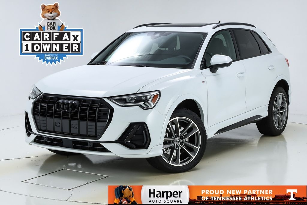 Check out all these great options 19" Wheel Package (Wheels: 19" 5-Twin-Arm Design), Black Optic Sport Package (Black Optic Exterior Kit & Roof Rails and S Line Sport Seats), Convenience Package (Alarm w/Motion Sensor, Audi Advanced Key, Audi Parking System Plus, Audi Side Assist, Frameless Auto-Dimming Interior Mirror w/Compass, Heated Power-Folding Exterior Mirrors, and SiriusXM All Access Service), Customizable LED Interior Lighting Package Plus, LED Interior Lighting Package, Premium Plus Package (Adaptive Cruise Assist w/Traffic Jam Assist, Aluminum Spectrum Inlays, Audi Phone Box w/Wireless Charging, Full LED Headlights w/Unique DRL Signature, HomeLink Garage Door Opener, and Stainless Steel Trunk Sill), 10 Speakers, 3.533 Axle Ratio, 4-Wheel Disc Brakes, ABS brakes, Air Conditioning, Alloy wheels, AM/FM radio, Audi smartphone interface (Apple CarPlay/Android Auto), Auto High-beam Headlights, Automatic temperature control, Brake assist, Bumpers: body-color, Delay-off headlights, Driver door bin, Driver vanity mirror, Dual front impact airbags, Dual front side impact airbags, Electronic Stability Control, Exterior Parking Camera Rear, Four wheel independent suspension, Front anti-roll bar, Front Bucket Seats, Front Center Armrest, Front dual zone A/C, Front fog lights, Front reading lights, Fully automatic headlights, Heated door mirrors, Heated Front Bucket Seats, Heated front seats, Illuminated entry, Knee airbag, Leather Seating Surfaces, Leather Shift Knob, Leather steering wheel, Low tire pressure warning, Occupant sensing airbag, Outside temperature display, Overhead airbag, Overhead console, Panic alarm, Passenger door bin, Passenger vanity mirror, Power door mirrors, Power driver seat, Power Liftgate, Power moonroof, Power passenger seat, Power steering, Power windows, Radio data system, Radio: Audi Sound System, Rain sensing wipers, Rear air conditioning, Rear anti-roll bar, Rear fog lights, Rear reading lights, Rear seat center armrest, Rear window defroster, Rear window wiper, Remote keyless entry, Speed control, Speed-sensing steering, Split folding rear seat, Spoiler, Steering wheel mounted audio controls, Tachometer, Telescoping steering wheel, Tilt steering wheel, Traction control, Trip computer, Turn signal indicator mirrors, Variably intermittent wipers, and Wheels: 18" 5-Twin-Spoke Dynamic Design. Please contact Harper Audi at (865) 691-2834 for details. Come see why Harper has the easiest car buying experience in the South! CARFAX One-Owner. Clean CARFAX. Glacier White Metallic quattro 8-Speed Automatic with Tiptronic 2.0L 4-Cylinder TFSI 2021 Audi Q3 Premium Plus in Glacier White Metallic, 19" Wheel Package, Adaptive Cruise Assist w/Traffic Jam Assist, Alarm w/Motion Sensor, Aluminum Spectrum Inlays, Audi Advanced Key, Audi Parking System Plus, Audi Phone Box w/Wireless Charging, Audi Side Assist, Black Optic Exterior Kit & Roof Rails, Black Optic Sport Package, Convenience Package, Customizable LED Interior Lighting Package Plus, Frameless Auto-Dimming Interior Mirror w/Compass, Full LED Headlights w/Unique DRL Signature, Heated Power-Folding Exterior Mirrors, HomeLink Garage Door Opener, LED Interior Lighting Package, Premium Plus Package, S Line Sport Seats, SiriusXM All Access Service, Stainless Steel Trunk Sill, Wheels: 19" 5-Twin-Arm Design.