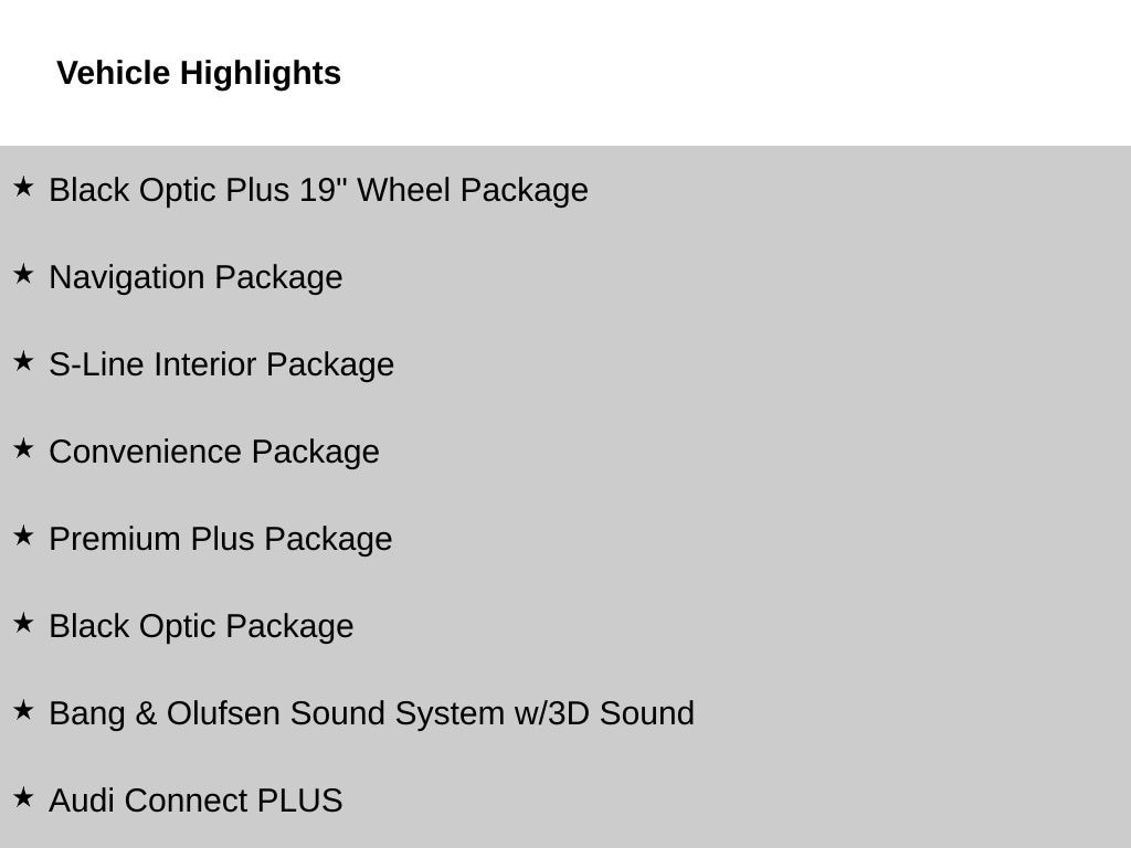 Check out all these great options Black Optic Package (Aluminum Ellipse Dark Inlays, Black Audi Rings & Model Badge, Black Exterior Trim & Mirror Housings, Black Side Sill Blades & Rear Lip Spoiler, Dark Chrome Exhaust Tips, Red Brake Calipers, and Wheels: 18" 5-Arm Trapezoid Design Titanium Finish), Black Optic Plus 19" Wheel Package (Wheels: 19" 5-Arm Rotor Design Bi-Color Finish), Convenience Package (Adaptive Cruise Control, Alarm System w/Motion Sensor, Audi Advanced Key, Audi Side Assist w/Pre Sense Rear, Auto-Dimming Exterior Mirrors w/Memory, Heated Steering Wheel, Memory for Driver's Seat, Parking System Plus, and SiriusXM w/360L), Navigation Package (Audi Connect PLUS and MMI Navigation Plus), Premium Plus Package (2 Rear USB Charge Ports, Audi Active Lane Assist, Audi Phone Box, Audi Virtual Cockpit Plus, Bang & Olufsen Sound System w/3D Sound, Hands-On Detection Steering Wheel, Leatherette Covered Center Console & Door Armrests, Power Folding Exterior Mirrors, Top View Camera System, and Traffic Jam Assist), S-Line Interior Package (Brushed Aluminum Inlays, Leather/Dinamica Seating Surfaces, and Stainless Steel Pedal Caps), 10 Speakers, 4-Wheel Disc Brakes, ABS brakes, Air Conditioning, Alloy wheels, AM/FM radio, Anti-whiplash front head restraints, Audi Beam-Rings, Audi Guard Protection Kit, Audi Guard Wheel Lock Kit, Audi smartphone interface (Apple CarPlay/Android Auto), Auto High-beam Headlights, Auto-dimming Rear-View mirror, Automatic temperature control, Brake assist, Bumpers: body-color, Compass, Delay-off headlights, Driver door bin, Driver vanity mirror, Dual front impact airbags, Dual front side impact airbags, Electronic Stability Control, Emergency communication system: Audi connect CARE, Exterior Parking Camera Rear, Four wheel independent suspension, Front anti-roll bar, Front Bucket Seats, Front Center Armrest, Front dual zone A/C, Front fog lights, Front reading lights, Garage door transmitter: HomeLink, Genuine wood dashboard insert, Genuine wood door panel insert, Heated door mirrors, Heated front seats, Heated Front Sport Bucket Seats, Illuminated entry, Integrated Toll Module Delete (DISC), Knee airbag, Leather Seating Surfaces, Leather Shift Knob, Leather steering wheel, Low tire pressure warning, Occupant sensing airbag, Outside temperature display, Overhead airbag, Overhead console, Panic alarm, Passenger door bin, Passenger vanity mirror, Power door mirrors, Power driver seat, Power moonroof, Power passenger seat, Power steering, Power windows, Radio data system, Radio: Audi Sound System, Rain sensing wipers, Rear air conditioning, Rear anti-roll bar, Rear reading lights, Rear seat center armrest, Rear window defroster, Remote keyless entry, Speed control, Speed-sensing steering, Speed-Sensitive Wipers, Split folding rear seat, Steering wheel mounted audio controls, Tachometer, Telescoping steering wheel, Tilt steering wheel, Traction control, Trip computer, Turn signal indicator mirrors, Variably intermittent wipers, and Wheels: 18" 5-Double-Spoke Design. Please contact Harper Audi at (865) 691-2834 for details. Come see why Harper has the easiest car buying experience in the South! CARFAX One-Owner. Clean CARFAX. Daytona Gray Pearl quattro 7-Speed Automatic S tronic 2.0L TFSI 2023 Audi A4 45 S line Premium Plus in Daytona Gray Pearl, 2 Rear USB Charge Ports, Adaptive Cruise Control, Alarm System w/Motion Sensor, Aluminum Ellipse Dark Inlays, Audi Active Lane Assist, Audi Advanced Key, Audi Connect PLUS, Audi Phone Box, Audi Side Assist w/Pre Sense Rear, Audi Virtual Cockpit Plus, Auto-Dimming Exterior Mirrors w/Memory, Bang & Olufsen Sound System w/3D Sound, Black Audi Rings & Model Badge, Black Exterior Trim & Mirror Housings, Black Optic Package, Black Optic Plus 19" Wheel Package, Black Side Sill Blades & Rear Lip Spoiler, Brushed Aluminum Inlays, Convenience Package, Dark Chrome Exhaust Tips, Hands-On Detection Steering Wheel, Heated Steering Wheel, Leather/Dinamica Seating Surfaces,