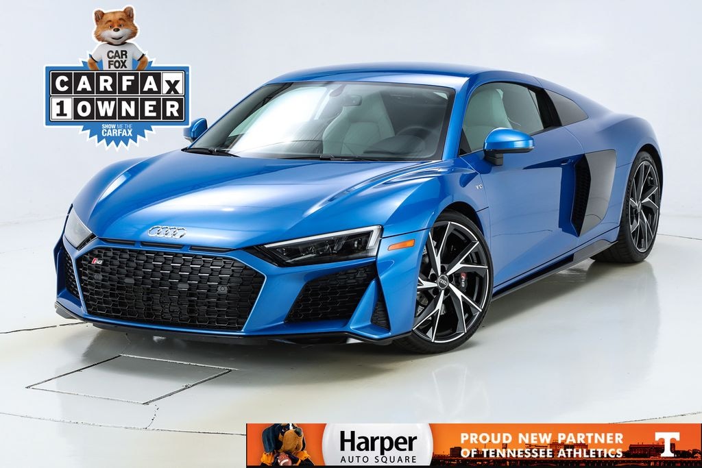 Check out all these great options Extended Leather Package, Full Leather Package, Premium Package (Alcantara Headliner and Illuminated Door Sill Inlays), Sport Exhaust Package (Audi Drive Select w/Performance Mode, Sport Exhaust System w/Black Exhaust Tips, and Sport Steering Wheel w/4 Satellite Buttons), 4-Wheel Disc Brakes, 5 Speakers, ABS brakes, Air Conditioning, Alloy wheels, AM/FM radio: SiriusXM, Audi smartphone interface (Apple CarPlay/Android Auto), Auto High-beam Headlights, Auto-dimming door mirrors, Auto-dimming Rear-View mirror, Automatic temperature control, Brake assist, Bumpers: body-color, Compass, Delay-off headlights, Driver door bin, Driver vanity mirror, Dual front impact airbags, Dual front side impact airbags, Electronic Stability Control, Exterior Parking Camera Rear, Fine Nappa Leather Seat Trim, Four wheel independent suspension, Front anti-roll bar, Front Bucket Seats, Front Center Armrest, Front reading lights, Fully automatic headlights, Garage door transmitter: HomeLink, Heated door mirrors, Heated front seats, Heated Front Sport Seats, Illuminated entry, Knee airbag, Leather Shift Knob, Low tire pressure warning, Navigation system: MMI Navigation plus, Occupant sensing airbag, Outside temperature display, Overhead airbag, Panic alarm, Passenger door bin, Passenger vanity mirror, Power door mirrors, Power driver seat, Power passenger seat, Power steering, Power windows, Radio data system, Radio: MMI Navigation Plus, Rain sensing wipers, Rear anti-roll bar, Rear window defroster, Remote CD player, Remote keyless entry, Security system, Speed control, Speed-Sensitive Wipers, Spoiler, Sport steering wheel, Steering wheel mounted audio controls, Tachometer, Telescoping steering wheel, Tilt steering wheel, Traction control, Trip computer, Turn signal indicator mirrors, Variably intermittent wipers, Voltmeter, and Wheels: 20" Bi-Color 5-V-Spoke-Evo Design. Please contact Harper Audi at (865) 691-2834 for details. Come see why Harper has the easiest car buying experience in the South! CARFAX One-Owner. Clean CARFAX. Ara Blue Crystal Effect RWD 7-Speed Automatic S tronic 5.2L V10 FSI DOHC 40V LEV3-LEV160 562hp 2023 Audi R8 V10 performance in Ara Blue Crystal Effect, Alcantara Headliner, Audi Drive Select w/Performance Mode, Extended Leather Package, Full Leather Package, Illuminated Door Sill Inlays, Premium Package, Sport Exhaust Package, Sport Exhaust System w/Black Exhaust Tips, Sport Steering Wheel w/4 Satellite Buttons.