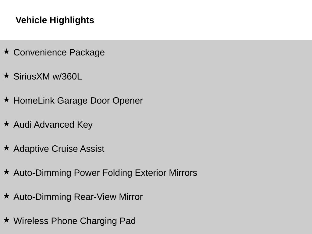 Check out all these great options Convenience Package (Adaptive Cruise Assist, Audi Advanced Key, Auto-Dimming Power Folding Exterior Mirrors, Auto-Dimming Rear-View Mirror, HomeLink Garage Door Opener, Memory for Driver's Seat, SiriusXM w/360L, and Wireless Phone Charging Pad), 4-Wheel Disc Brakes, 6 Speaker Sound System, 6 Speakers, ABS brakes, Air Conditioning, Alloy wheels, AM/FM radio, Audi Guard All-Weather Floor Mats, Auto High-beam Headlights, Automatic temperature control, Brake assist, Bumpers: body-color, Delay-off headlights, Driver door bin, Driver vanity mirror, Dual front impact airbags, Dual front side impact airbags, Electronic Stability Control, Emergency communication system: Audi connect CARE, Exterior Parking Camera Rear, Four wheel independent suspension, Front anti-roll bar, Front Bucket Seats, Front Center Armrest, Front dual zone A/C, Front reading lights, Fully automatic headlights, Genuine wood dashboard insert, Heated door mirrors, Heated Front Bucket Seats, Heated front seats, Illuminated entry, Knee airbag, Leather Seating Surfaces, Leather steering wheel, Low tire pressure warning, Occupant sensing airbag, Outside temperature display, Overhead airbag, Overhead console, Panic alarm, Passenger door bin, Passenger vanity mirror, Power door mirrors, Power driver seat, Power moonroof, Power passenger seat, Power steering, Power windows, Radio data system, Radio: MMI w/10.1" Touchscreen Display, Rain sensing wipers, Rear air conditioning, Rear anti-roll bar, Rear fog lights, Rear reading lights, Rear seat center armrest, Rear side impact airbag, Rear window defroster, Remote keyless entry, Security system, Speed control, Speed-sensing steering, Speed-Sensitive Wipers, Split folding rear seat, Steering wheel mounted audio controls, Tachometer, Telescoping steering wheel, Tilt steering wheel, Traction control, Trip computer, Turn signal indicator mirrors, Variably intermittent wipers, and Wheels: 17" 5-V-Spoke Design. Please contact Harper Audi at (865) 691-2834 for details. Come see why Harper has the easiest car buying experience in the South! CARFAX One-Owner. Clean CARFAX. Arkona White quattro 7-Speed Automatic S tronic 2.0L 4-Cylinder TFSI 2025 Audi A3 40 Premium in Arkona White, Adaptive Cruise Assist, Audi Advanced Key, Auto-Dimming Power Folding Exterior Mirrors, Auto-Dimming Rear-View Mirror, Convenience Package, HomeLink Garage Door Opener, Memory for Driver's Seat, SiriusXM w/360L, Wireless Phone Charging Pad.