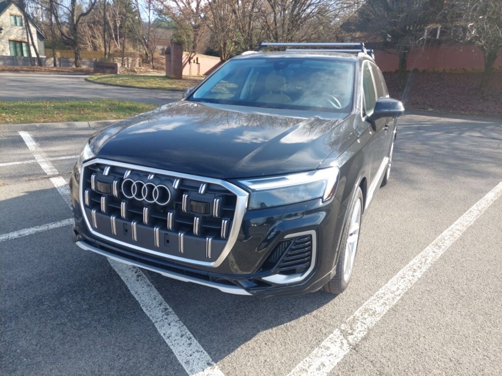 Check out all these great options Convenience Package (Heated Steering Wheel, Top View Camera System, and Wireless Phone Charging Pad), Executive Plus Package (Comfort Adaptive Air Suspension, Control Buttons in Gloss Black with Haptic Feedback, Dual-Pane Acoustic Glass For Side Windows, Four-Zone Automatic Climate Control, Front Seats with Ventilation, Heated Rear Seats, Power Soft-Closing Doors, Rear Door/Side Windows and Tailgate Sunshades, and Traffic Sign Recognition), LED Interior Lighting Package Plus, Premium Plus Package (Bang & Olufsen Premium Sound System with 3D Sound, Illuminated Door Sills, and Wheels: 20" 5-Double-Spoke), 10 Speakers, 3rd row seats: bench, 4-Wheel Disc Brakes, ABS brakes, Air Conditioning, Alloy wheels, AM/FM radio: SiriusXM w/360L, Auto High-beam Headlights, Auto-dimming door mirrors, Auto-dimming Rear-View mirror, Automatic temperature control, Brake assist, Bumpers: body-color, Compass, Delay-off headlights, Driver door bin, Driver vanity mirror, Dual front impact airbags, Dual front side impact airbags, Electronic Stability Control, Emergency communication system: Audi connect CARE, Exterior Parking Camera Rear, Four wheel independent suspension, Front anti-roll bar, Front Bucket Seats, Front Center Armrest, Front dual zone A/C, Front fog lights, Front reading lights, Fully automatic headlights, Garage door transmitter: HomeLink, Genuine wood door panel insert, Heated door mirrors, Heated Front Bucket Seats, Heated front seats, Illuminated entry, Leather Seating Surfaces, Leather Shift Knob, Leather steering wheel, Low tire pressure warning, Memory seat, Navigation system: Audi MMI Navigation plus with Touch Response, Occupant sensing airbag, Outside temperature display, Overhead airbag, Overhead console, Panic alarm, Passenger door bin, Passenger vanity mirror, Power door mirrors, Power driver seat, Power Liftgate, Power moonroof: Panoramic, Power passenger seat, Power steering, Power windows, Radio data system, Radio: Audi Sound System, Rain sensing wipers, Rear air conditioning, Rear anti-roll bar, Rear fog lights, Rear reading lights, Rear seat center armrest, Rear side impact airbag, Rear window defroster, Rear window wiper, Reclining 3rd row seat, Remote keyless entry, Security system, Speed control, Speed-sensing steering, Split folding rear seat, Spoiler, Steering wheel memory, Steering wheel mounted audio controls, Tachometer, Telescoping steering wheel, Tilt steering wheel, Traction control, Trip computer, Turn signal indicator mirrors, Variably intermittent wipers, and Wheels: 19" 5-Arm-Star Design. Please contact Harper Audi at (865) 691-2834 for details. Come see why Harper has the easiest car buying experience in the South! CARFAX One-Owner. Mythos Black Metallic quattro 8-Speed Automatic with Tiptronic 3.0L TFSI 2025 Audi Q7 55 Premium Plus in Mythos Black Metallic, Bang & Olufsen Premium Sound System with 3D Sound, Comfort Adaptive Air Suspension, Control Buttons in Gloss Black with Haptic Feedback, Convenience Package, Dual-Pane Acoustic Glass For Side Windows, Executive Plus Package, Four-Zone Automatic Climate Control, Front Seats with Ventilation, Heated Rear Seats, Heated Steering Wheel, Illuminated Door Sills, LED Interior Lighting Package Plus, Power Soft-Closing Doors, Premium Plus Package, Rear Door/Side Windows and Tailgate Sunshades, Top View Camera System, Traffic Sign Recognition, Wheels: 20" 5-Double-Spoke, Wireless Phone Charging Pad.