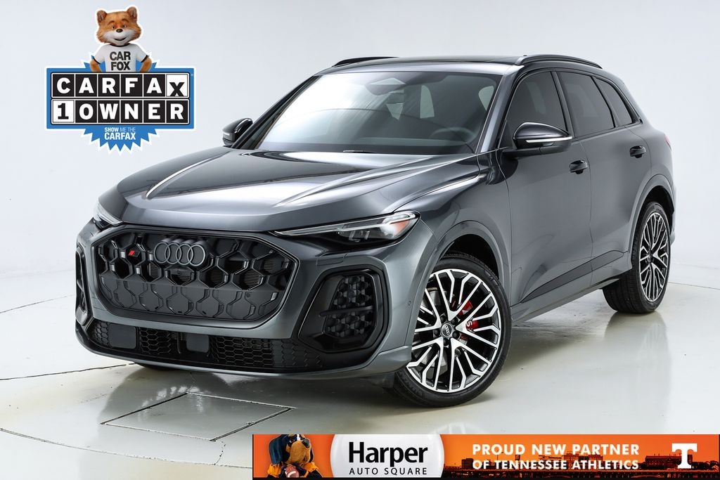 Check out all these great options 21" Wheel Package (Wheels: 21" 5-Arm-Split Design), Black Optic Package (Anthracite Audi Rings, Black Exterior Trim, Black Mirror Housings, Black Roof Rails, Dark Chrome Exhaust Tips, and Wheels: 21" Multispoke-S Design), LED Interior Lighting Pro Package, Premium Plus Package (Adaptive Cruise Assist, Bang & Olufsen Sound System with 3D Sound, Dynamic Interaction Light, Head-Up Display, Heated Steering Wheel with Hands-on Detection, Panoramic Sunroof, Top View Camera System, and USB Power Delivery (2x60W Front and 2x100W Rear)), 10 Speakers, 4-Wheel Disc Brakes, ABS brakes, Adaptive suspension, Air Conditioning, Alloy wheels, AM/FM radio: SiriusXM w/360L, Auto High-beam Headlights, Auto tilt-away steering wheel, Auto-dimming door mirrors, Auto-dimming Rear-View mirror, Auto-leveling suspension, Automatic temperature control, Brake assist, Bumpers: body-color, Compass, Delay-off headlights, Driver door bin, Driver vanity mirror, Dual front impact airbags, Dual front side impact airbags, Electronic Stability Control, Emergency communication system: Audi connect CARE, Exterior Parking Camera Rear, Four wheel independent suspension, Front anti-roll bar, Front Bucket Seats, Front Center Armrest, Front dual zone A/C, Front fog lights, Front reading lights, Garage door transmitter: HomeLink, Heated door mirrors, Heated front seats, Heated Front Sport Seats, Illuminated entry, Leather steering wheel, Leather/Dinamica Seating Surfaces, Low tire pressure warning, Memory seat, Navigation system: Audi Navigation Plus, Occupant sensing airbag, Outside temperature display, Overhead airbag, Overhead console, Panic alarm, Passenger door bin, Passenger vanity mirror, Power door mirrors, Power driver seat, Power Liftgate, Power passenger seat, Power steering, Power windows, Radio data system, Radio: MMI Navigation Plus, Rain sensing wipers, Rear air conditioning, Rear anti-roll bar, Rear fog lights, Rear reading lights, Rear seat center armrest, Rear window defroster, Rear window wiper, Remote keyless entry, Roof rack, Security system, Speed control, Speed-sensing steering, Speed-Sensitive Wipers, Split folding rear seat, Spoiler, Sport steering wheel, Steering wheel mounted audio controls, Tachometer, Telescoping steering wheel, Tilt steering wheel, Traction control, Trip computer, Turn signal indicator mirrors, Variably intermittent wipers, and Wheels: 20" 5-Double-Spoke-Twist Design. Please contact Harper Audi at (865) 691-2834 for details. Come see why Harper has the easiest car buying experience in the South! CARFAX One-Owner. Clean CARFAX. Daytona Gray Pearl Effect quattro 7-Speed Automatic S tronic 3.0L TFSI 2025 Audi SQ5 3.0T Premium Plus in Daytona Gray Pearl Effect, 21" Wheel Package, Adaptive Cruise Assist, Anthracite Audi Rings, Bang & Olufsen Sound System with 3D Sound, Black Exterior Trim, Black Mirror Housings, Black Optic Package, Black Roof Rails, Dark Chrome Exhaust Tips, Dynamic Interaction Light, Head-Up Display, Heated Steering Wheel with Hands-on Detection, LED Interior Lighting Pro Package, Panoramic Sunroof, Premium Plus Package, Top View Camera System, USB Power Delivery (2x60W Front and 2x100W Rear), Wheels: 21" 5-Arm-Split Design, Wheels: 21" Multispoke-S Design.