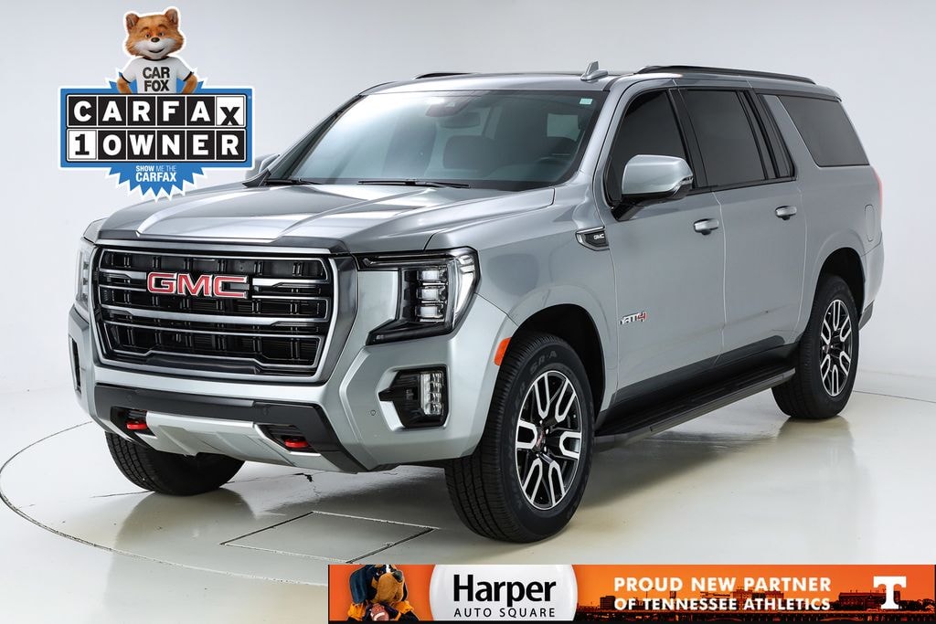 Check out all these great options Preferred Equipment Group 4SB (2 Presets For Outside Rearview Mirrors, 3 Years of GMC Connected Services, 3 Years of OnStar Safety & Security, 3rd Row 60/40 Power-Folding Split-Bench Seat, Black Roof-Mounted Luggage Rack Side Rails, Bose 9-Speaker Stereo Audio System Feature, Bright Front & Rear Door Sill Plates, Front High-Approach Angle Fascia, Hands-Free Power Programmable Rear Liftgate, Heated & Ventilated Driver & Front Passenger Seats, Heated 2nd Row Outboard Position Seats, Heated Driver & Front Passenger Seats, Heated Steering Wheel, Heavy-Duty Air Filter, Hill Descent Control, Inside Rear-View Auto-Dimming Mirror, Outside Heated Power-Adjustable Mirrors, Power Release 2nd Row 60/40 Split-Folding Bench Seat, Power Tilt & Telescopic Steering Column, Red Horizontal-Mounted Recovery Hooks, Safety Alert Seat, Universal Home Remote, and Wireless Charging), 3 Years of OnStar Safety & Security (DISC), 3.23 Rear Axle Ratio, 3rd row seats: split-bench, 4-Wheel Disc Brakes, 9 Speakers, ABS brakes, Adaptive suspension, Air Conditioning, Alloy wheels, AM/FM radio: SiriusXM with 360L, AM/FM Stereo, Apple CarPlay/Android Auto, Auto High-beam Headlights, Auto-dimming door mirrors, Auto-dimming Rear-View mirror, Auto-leveling suspension, Automatic Emergency Braking, Automatic temperature control, Brake assist, Bumpers: body-color, Compass, Delay-off headlights, Driver door bin, Driver vanity mirror, Dual front impact airbags, Dual front side impact airbags, Dual-Pane Panoramic Power Sunroof, Electronic Stability Control, Emergency communication system: OnStar and GMC connected services capable, Floor Console, Following Distance Indicator, Forward Collision Alert, Four wheel independent suspension, Front & Rear Park Assist, Front anti-roll bar, Front Bucket Seats, Front Center Armrest, Front dual zone A/C, Front fog lights, Front Pedestrian Braking, Front reading lights, Fully automatic headlights, Garage door transmitter, Heated door mirrors, Heated front seats, Heated rear seats, Heated steering wheel, Illuminated entry, IntelliBeam Automatic High Beam On/Off, Lane Change Alert w/Side Blind Zone Alert, Lane Keep Assist w/Lane Departure Warning, Low tire pressure warning, Magnetic Ride Control Suspension, Memory seat, Navigation System, Occupant sensing airbag, Outside temperature display, Overhead airbag, Overhead console, Panic alarm, Passenger door bin, Passenger vanity mirror, Perforated Leather Seating Surfaces, Power door mirrors, Power driver seat, Power Liftgate, Power passenger seat, Power Release 2nd Row Bucket Seats, Power steering, Power windows, Rain sensing wipers, Rear air conditioning, Rear anti-roll bar, Rear Cross Traffic Alert, Rear reading lights, Rear seat center armrest, Rear window defroster, Rear window wiper, Remote keyless entry, Roof rack: rails only, Security system, SiriusXM w/360L, Speed control, Speed-sensing steering, Split folding rear seat, Spoiler, Steering wheel memory, Steering wheel mounted audio controls, Tachometer, Telescoping steering wheel, Tilt steering wheel, Traction control, Trip computer, Turn signal indicator mirrors, Variably intermittent wipers, Ventilated front seats, Voltmeter, and Wheels: 20" x 9" 6-Spoke Machined Aluminum. Please contact Harper Audi at (865) 691-2834 for details. Come see why Harper has the easiest car buying experience in the South! CARFAX One-Owner. Clean CARFAX. Sterling Metallic 4WD 10-Speed Automatic with Overdrive EcoTec3 5.3L V8 2023 GMC Yukon XL AT4 in Sterling Metallic.