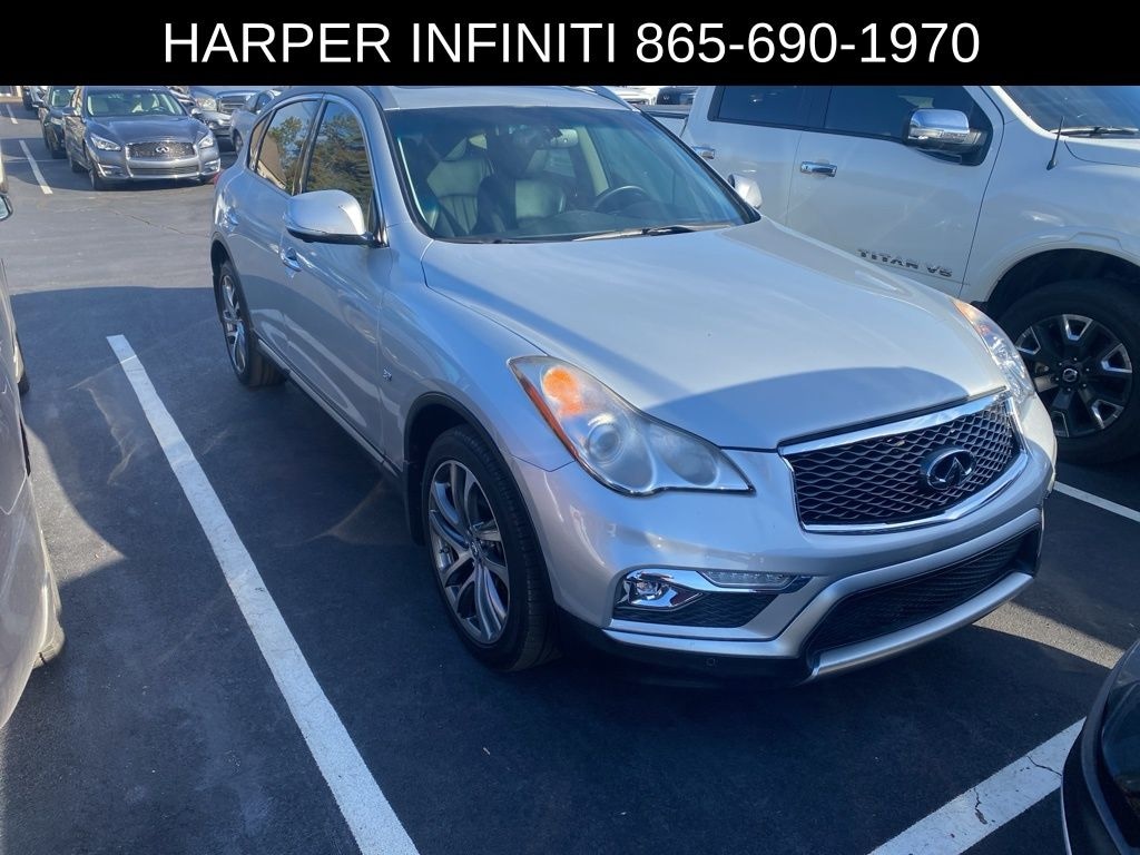 Harper INFINITI is very proud to offer this fantastic 2017 INFINITI QX50 in Liquid Platinum HARPER INFINITI believes in the quality of the vehicles we sell so well that we provide an UNLIMITED MILES, POWERTRAIN WARRANTY on every new and qualifying pre-owned vehicle it sells!!! This warranty is good at any ASE certified shop in the 48 continental United States!! Check out all these great options Deluxe Touring Package (19" x 8.5" Split 5-Spoke Aluminum-Alloy Wheels, 2-Way Power Driver's Seat Lumbar Support, 8-Way Power Front-Passenger's Seat, Coat Hanger On Driver's Seat Head Restraint, High-Intensity Discharge Xenon Headlights, Power Up-Folding 2nd Row Seats, and Premium Stitching On Meter Hood), Premium Package (Advanced Climate Control System, Aluminum Roof Rails, Auto-Dimming Inside Mirror, Bose 11-Speaker Premium Audio System, Dual Occupant Memory System For Driver's Seat, HomeLink Universal Transceiver, Maple Interior Accents, Outside Mirrors w/Reverse Tilt-Down Feature, Power Tilt & Telescopic Steering Column, and Radio: AM/FM/CD/DVD w/MP3 Playback Capability), Premium Plus Package (Around View Monitor (AVM), INFINITI Navigation System, and Streaming Audio via Bluetooth Wireless Technology), 3.133 Axle Ratio, 4-Wheel Disc Brakes, 6 Speakers, ABS brakes, Air Conditioning, Alloy wheels, AM/FM radio: SiriusXM, Anti-whiplash front head restraints, Automatic temperature control, Brake assist, Bumpers: body-color, CD player, Delay-off headlights, Driver door bin, Driver vanity mirror, Dual front impact airbags, Dual front side impact airbags, Electronic Stability Control, Four wheel independent suspension, Front anti-roll bar, Front Bucket Seats, Front Center Armrest, Front dual zone A/C, Front fog lights, Front reading lights, Heated door mirrors, Heated Front Bucket Seats, Heated front seats, Illuminated entry, Leather Shift Knob, Leather steering wheel, Leather-Appointed Seat Trim, Low tire pressure warning, Occupant sensing airbag, Outside temperature display, Overhead airbag, Overhead console, Panic alarm, Passenger door bin, Passenger vanity mirror, Power door mirrors, Power driver seat, Power moonroof, Power passenger seat, Power steering, Power windows, Radio data system, Radio: AM/FM/CD w/6 Speaker Audio System, Rear anti-roll bar, Rear reading lights, Rear seat center armrest, Rear window defroster, Rear window wiper, Remote keyless entry, Security system, Speed control, Speed-sensing steering, Speed-Sensitive Wipers, Splash Guards (Set of 4), Split folding rear seat, Spoiler, Stainless Steel Look Rear Bumper Protector, Steering wheel mounted audio controls, Tachometer, Telescoping steering wheel, Tilt steering wheel, Traction control, Trip computer, Turn signal indicator mirrors, Variably intermittent wipers, and Wheels: 18" x 8.0" 8-Spoke Aluminum-Alloy.