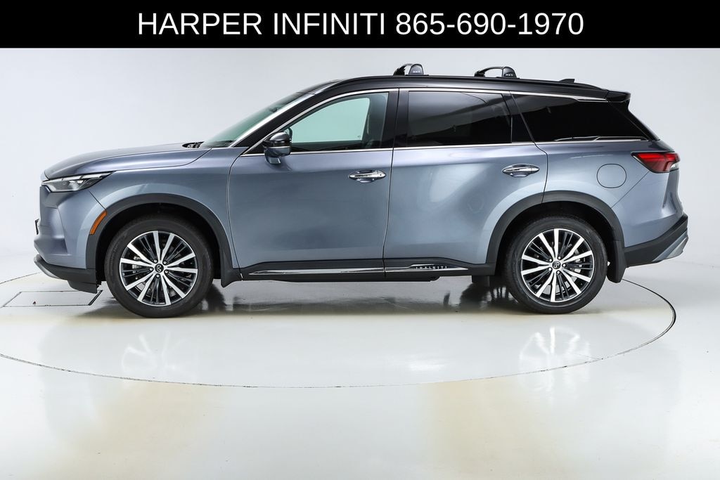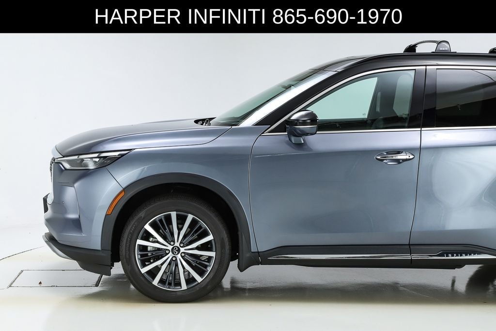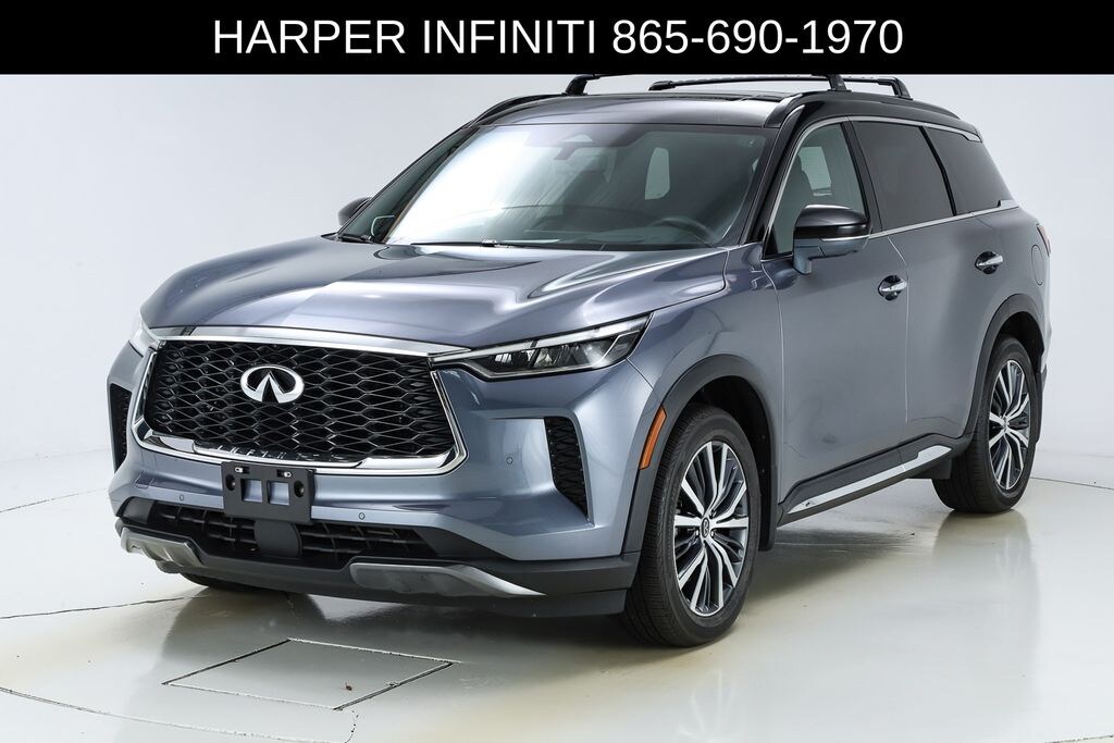 Harper INFINITI is very proud to offer this handsome 2023 INFINITI QX60 in Moonbow Blue/Black Obsidian HARPER INFINITI believes in the quality of the vehicles we sell so well that we provide an UNLIMITED MILES, POWERTRAIN WARRANTY on every new and qualifying pre-owned vehicle it sells!!! This warranty is good at any ASE certified shop in the 48 continental United States!! Check out all these great options Cargo Package (Cargo Mat (Reversible) and First Aid Kit), Navigation system: INFINITI InTouch Navigation, 17 Speakers, 3rd row seats: bench, 4-Wheel Disc Brakes, 4.334 Axle Ratio, ABS brakes, Air Conditioning, Alloy wheels, AM/FM radio: SiriusXM, Anti-whiplash front head restraints, Auto High-beam Headlights, Auto-dimming door mirrors, Auto-dimming Rear-View mirror, Automatic temperature control, Bose Performance Series 17-Speaker Sound System, Brake assist, Bumpers: body-color, Climate-Controlled Front Bucket Seats, Delay-off headlights, Driver door bin, Driver vanity mirror, Dual front impact airbags, Dual front side impact airbags, Electronic Stability Control, Emergency communication system, Floor Mats on Captains Chair w/3rd Row Tray, Four wheel independent suspension, Front anti-roll bar, Front Bucket Seats, Front Center Armrest, Front dual zone A/C, Front reading lights, Fully automatic headlights, Garage door transmitter: HomeLink, Heads-Up Display, Heated door mirrors, Heated front seats, Heated rear seats, Heated steering wheel, Illuminated entry, Illuminated Kick Plate, Knee airbag, Leather Shift Knob, Leather steering wheel, Literature Kit, Low tire pressure warning, Memory seat, Occupant sensing airbag, Outside temperature display, Overhead airbag, Overhead console, Panic alarm, Passenger door bin, Passenger vanity mirror, Power door mirrors, Power driver seat, Power Liftgate, Power moonroof, Power passenger seat, Power steering, Power windows, Radio data system, Radio: AM/FM Audio System, Rain sensing wipers, Rear air conditioning, Rear anti-roll bar, Rear reading lights, Rear side impact airbag, Rear window defroster, Rear window wiper, Reclining 3rd row seat, Remote keyless entry, Security system, Semi Aniline Leather Seating Surfaces, Speed control, Speed-sensing steering, Speed-Sensitive Wipers, Splash Guards, Split folding rear seat, Spoiler, Steering wheel memory, Steering wheel mounted audio controls, Tachometer, Telescoping steering wheel, Tilt steering wheel, Traction control, Trip computer, Turn signal indicator mirrors, Variably intermittent wipers, Ventilated front seats, and Wheels: 20" x 8J Luxury Machined Aluminum Alloy.
